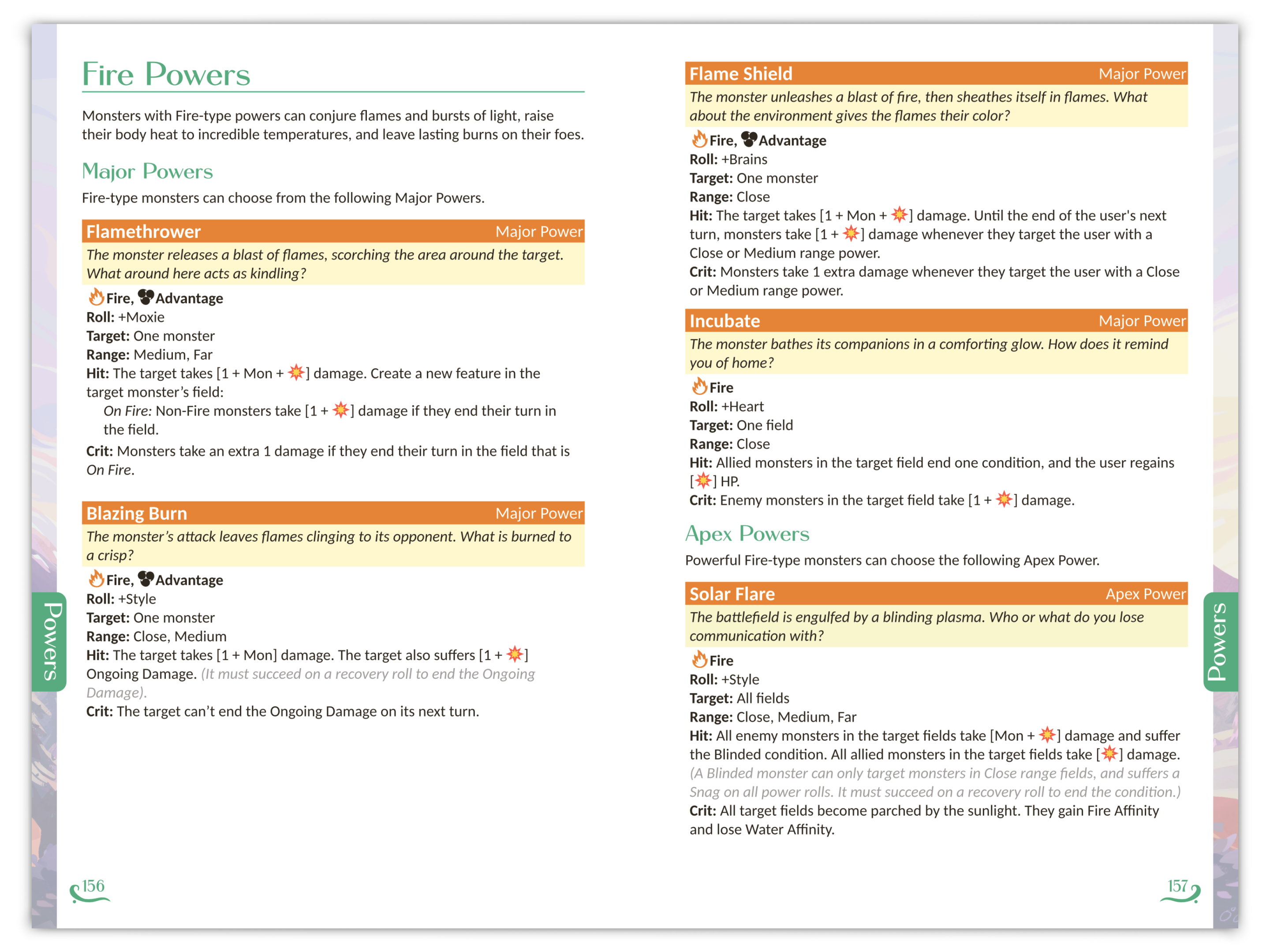 🎠Zero Prep: JourneyMon requires no preparation ahead of your game sessions. Instead, you use a set of randomization tools at the start of each session to generate the building blocks of a new story, including its location and a “monster of the week.” You won’t know where you’re going until you sit down at the table! The whole table gets involved with turning the generated prompts into a new part of the world, then populating that region with allies and enemies.